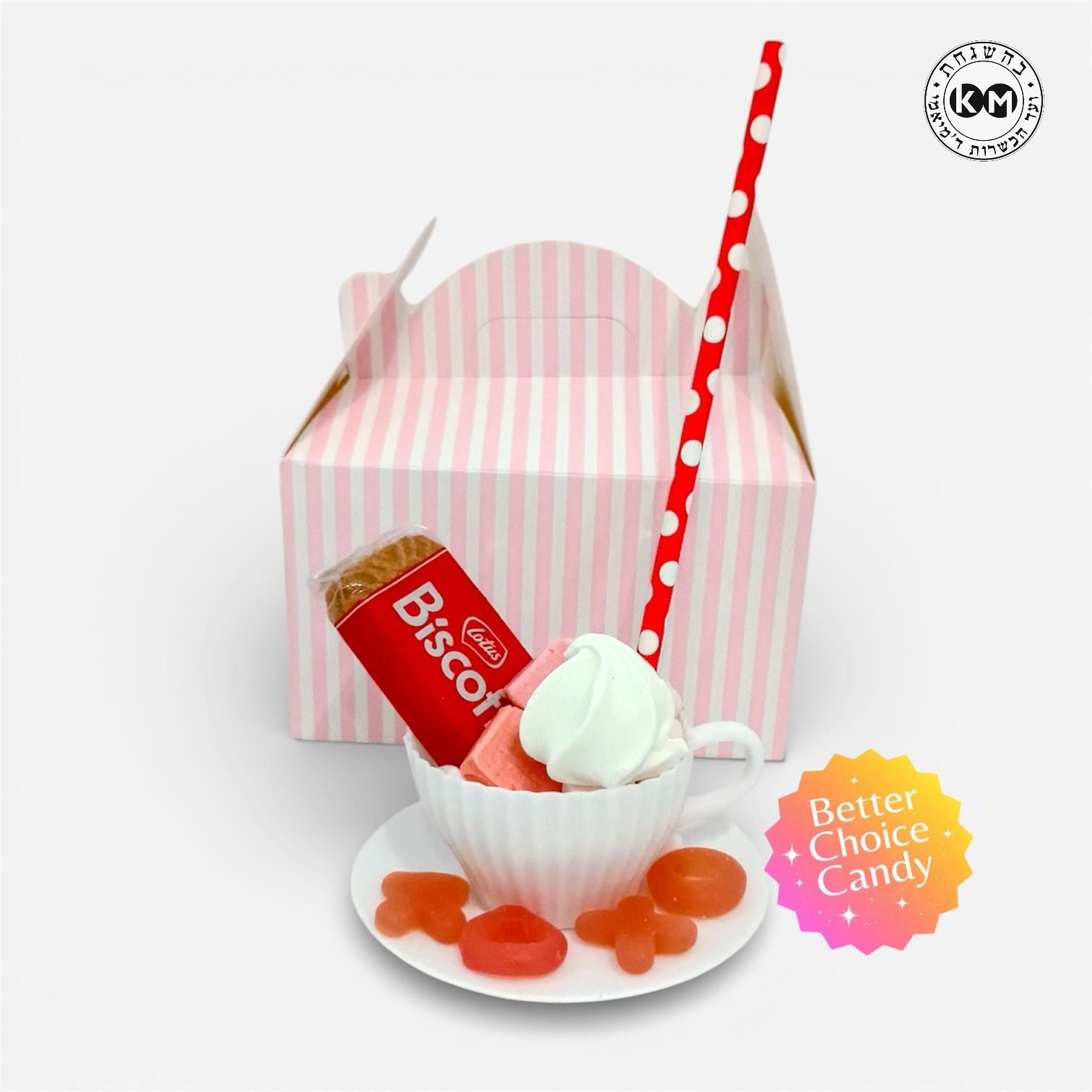 Cutest little cup filled with sweet treats for a special day. Cup can be used as an oven safe silicone muffin pan. Box includes tea cup with treats and hamentash.